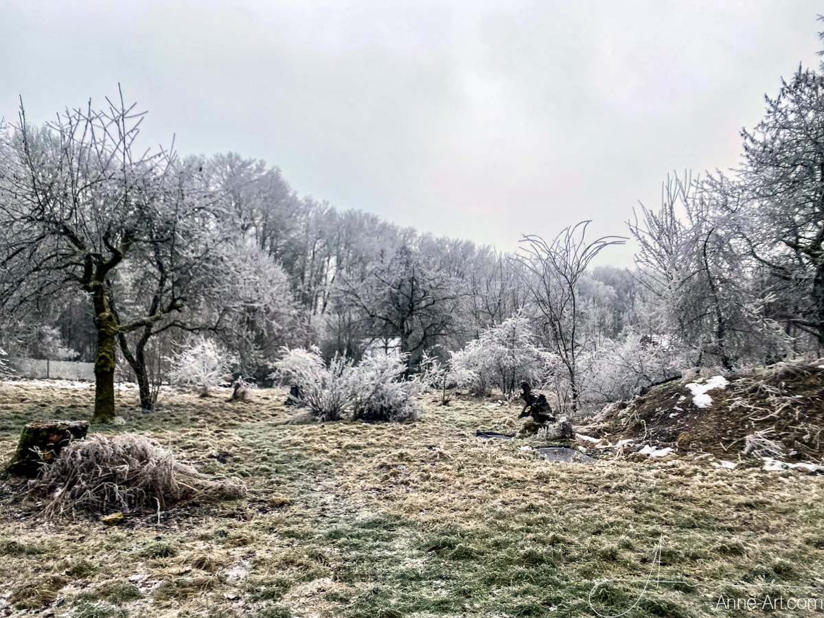 Und auch das gehört natürlich dazu: Kälte, Schnee und Ruhe. Wobei man deutlich sieht, dass wir vor dem Winter nicht mähen und zurückschneiden, alles abernten und aufräumen (danach auch nur sehr reduziert).