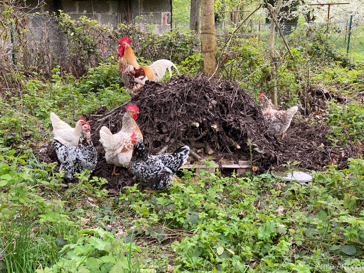 Wir haben ein schlechtes Gewissen, weil unsere Hühner nicht wirklich pro-biodivers agieren (sondern eher alles fressen, was sie finden). Das sollen die neuen Wasserflächen auch etwas abmildern … es ist nicht so leicht, es allen Lebewesen gleichermaßen recht zu machen. Die Kater und Hühner sind echte Familienmitglieder und als solche dürfen auch sie im Garten mitgestalten.